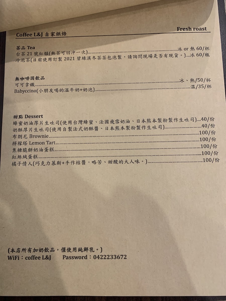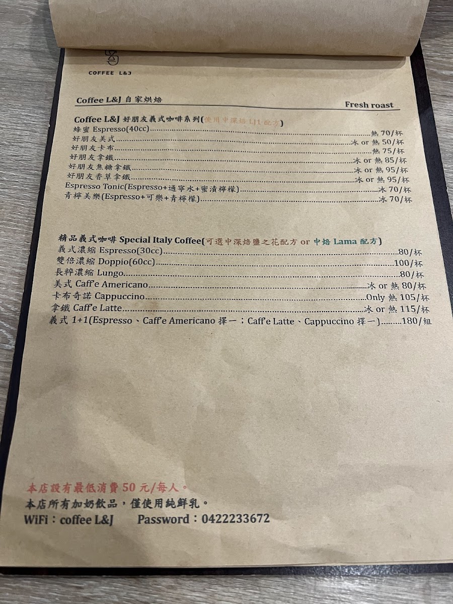 Welcome to Coffee L&J, a charming café nestled in the heart of Taichung City. This delightful spot marries a cozy atmosphere with a carefully curated menu tailored for coffee enthusiasts and casual drinkers alike. The centerpiece of their offerings is the renowned Espresso Tonic, a tantalizing blend of tonic water, rich espresso, and a hint of lemon, hailed as one of the finest citrus-infused coffees.